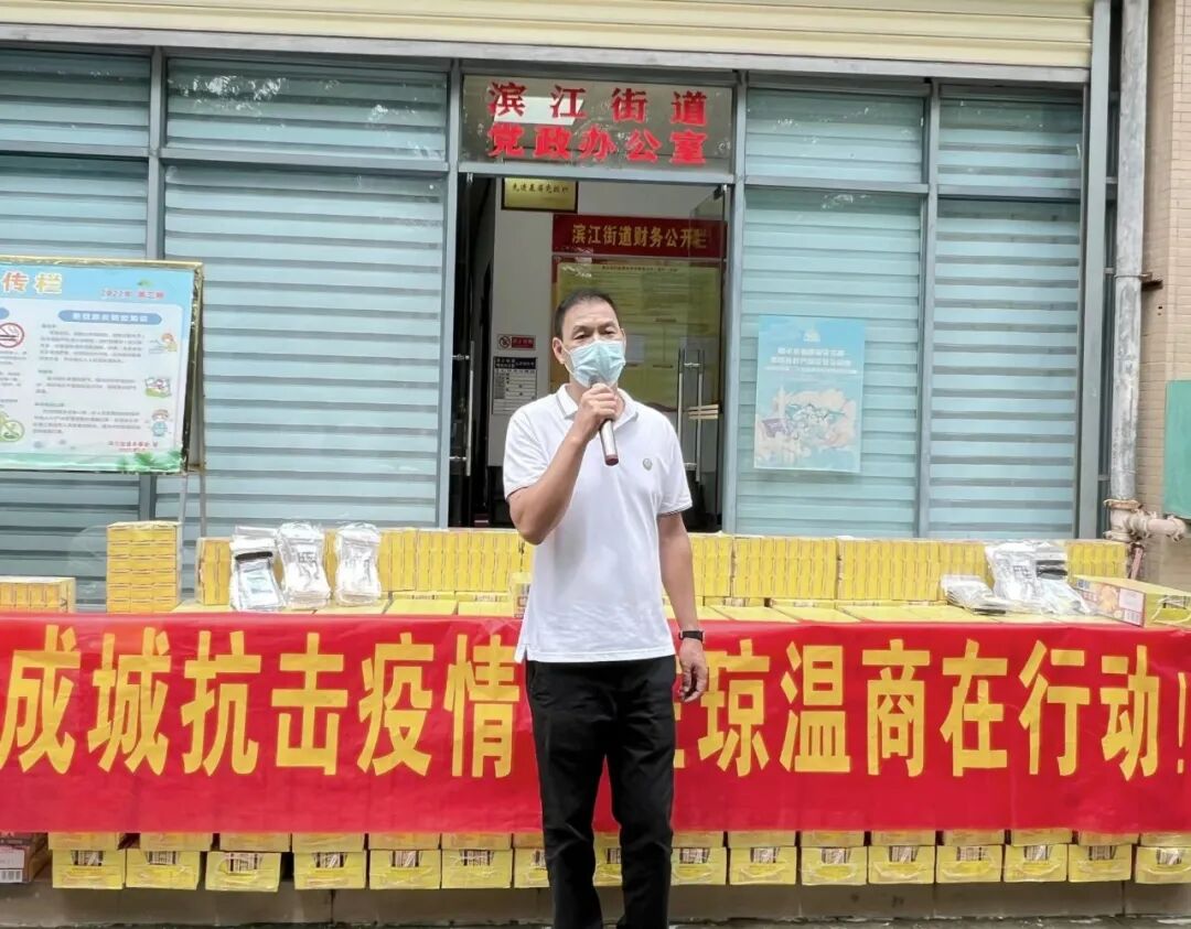 滨江街道办主任黄钰淇表示海口温州商会的倾情助力,既为疫情防控工作凝聚强大合力,也为这场战“疫”增添了温暖和感动,更坚定了大家战胜疫情的决心和信心。滨江街道将继续做好大规模核酸检测工作,做到“应检尽检、不漏一户、不漏一人”,为辖区的群众生命健康保驾护航。