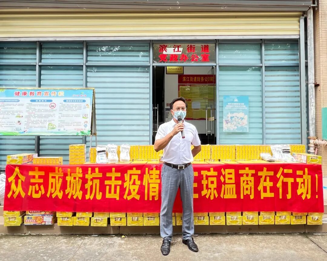 海口温州商会执行会长姚如旗表示本次海口滨江街道防疫物资捐赠活动由市政协韩斌主席牵线搭桥,知悉海口滨江街道缺乏防疫物资,影响疫情防控工作后,我会立刻采取行动,保障防疫物资供应。我会将继续投身疫情防控工作,践行使命,齐心抗疫,发扬温商精神,贡献温商力量。